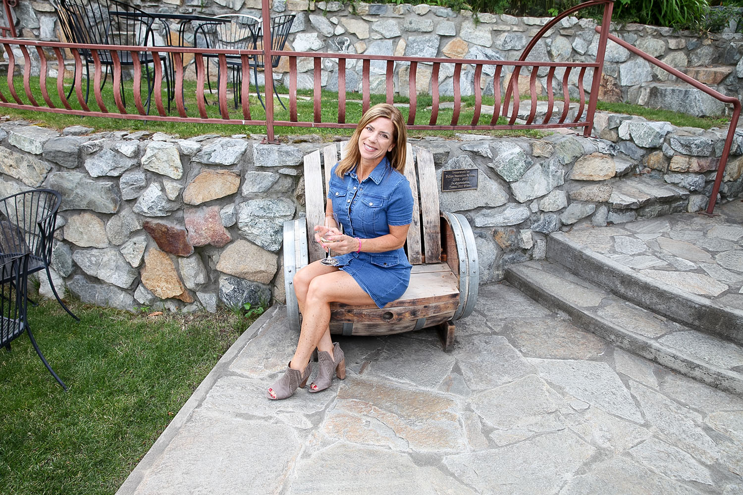 We totally had to try that adorable wine barrel bench out!