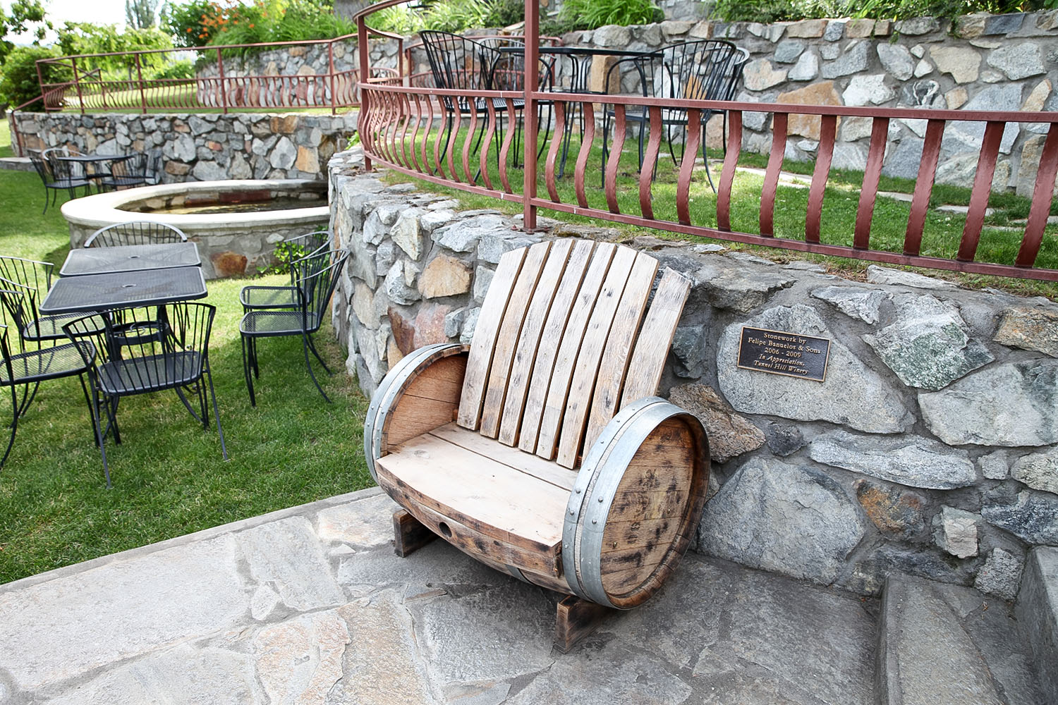 We love this darling bench made out of a used wine barrel!