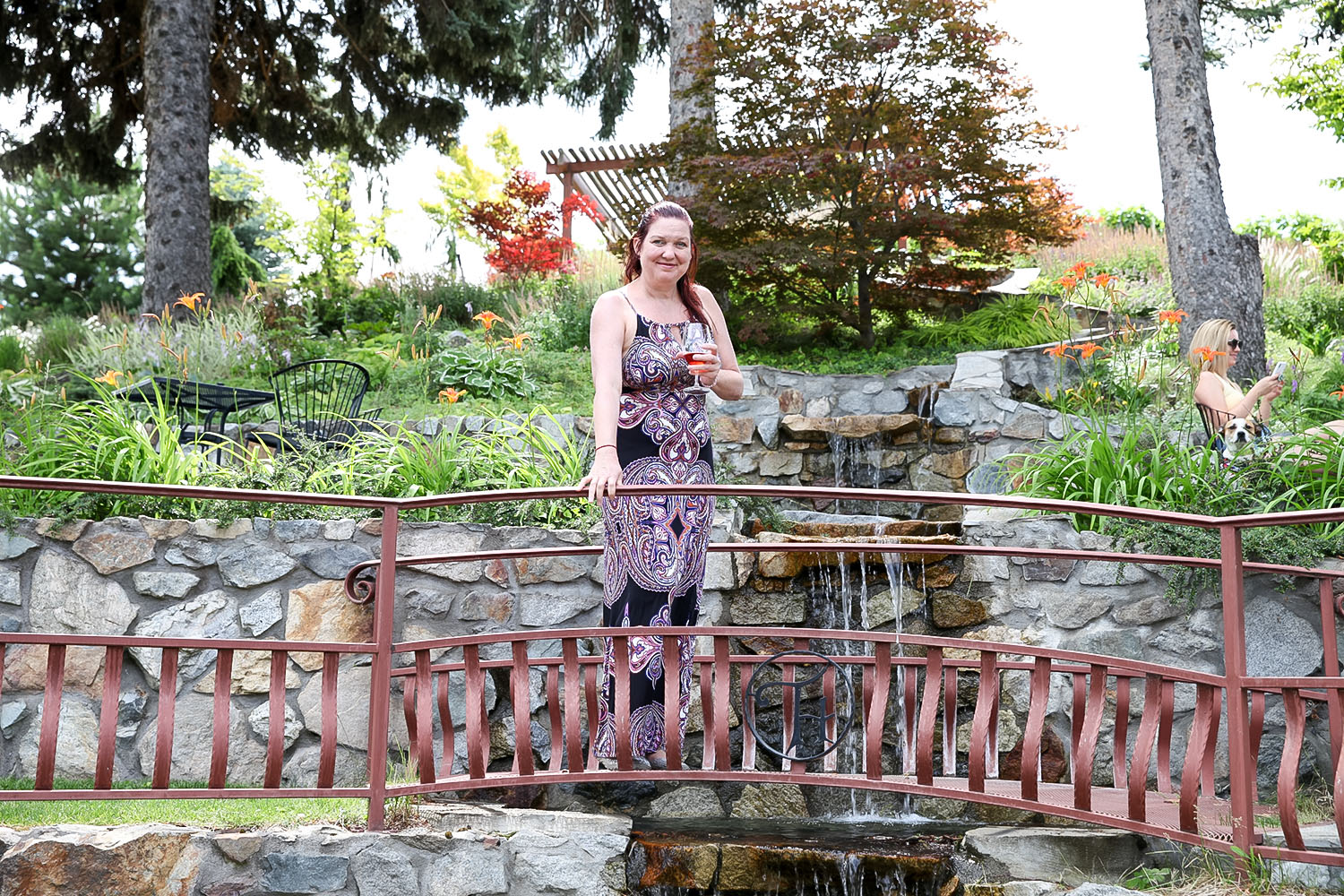 Tunnel Hill Winery has so many interesting things to explore! Here’s Carrie on the bridge over the little waterfall.