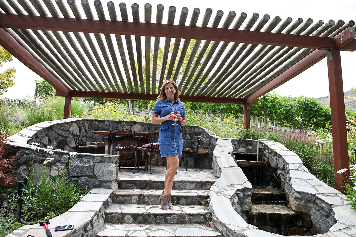 Jen went exploring and found a pergola-shaded pavilion with sitting area at the top of the hill.