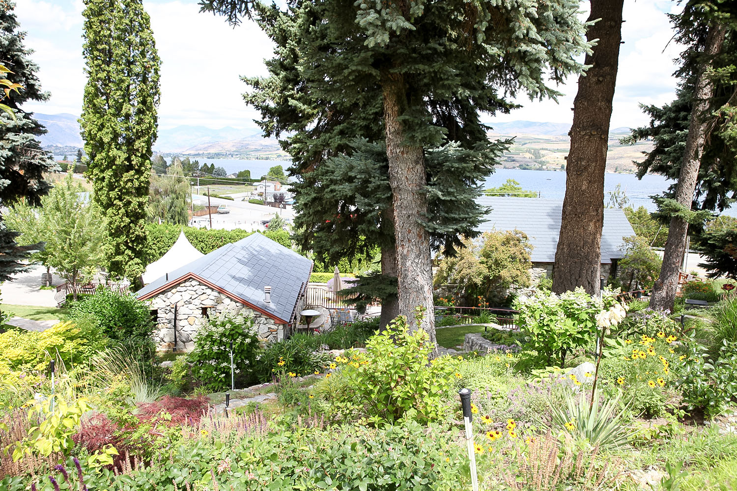 We admired the charming stone buildings on the property, made with stone from local rocks that were blasted out to make a tunnel for the roadway to Chelan. (You can read more about the Knapps Hill tunnel here).